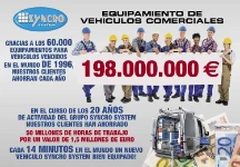Todos los años, los clientes Syncro System, gracias a la mayor eficiencia de las furgonetas equipadas por los revendedores e instaladores Syncro ahorramos cifras muy importantes: calculando treinta minutos de tiempo ahorrado cada día, el total llega a 198 millones de euros cada año.