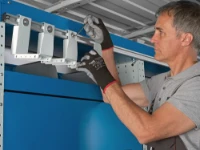 La barra en aluminio corrediza, modelo Syncroblock, puede alojar una amplia gama de ganchos, correas, muelles, ojales y perfiles en goma. Los distintos componentes pueden combinarse entre ellos de forma flexible y pueden discurrir libremente por toda su longitud. Puede montarse tanto en la carrocería de la furgoneta como directamente en el equipamiento Ultra. Gracias al perfil posterior, el montaje en el equipamiento tiene lugar con tornillos de cabeza cuadrada, sin necesidad de agujerear la barra y usando los orificios ya presentes en el equipamiento Ultra.